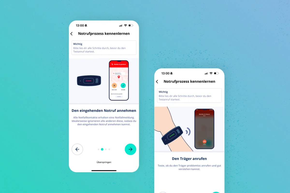 Notfälle sind Ausnahmezustände. Menschen handeln unter Angst und Zeitdruck. Das Zusammenspiel aus Armband, Notruffunktion und App musste absolut verlässlich sein. - ⌚