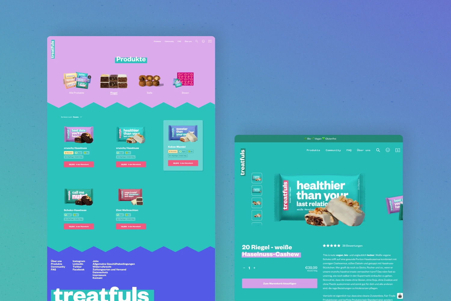 Treatfuls steht für bewussten Genuss ohne Kompromisse. Damit diese Haltung nicht nur im Produkt, sondern auch digital spürbar wird, brauchte es eine Plattform, die Sortiment, Marke und Conversion klar, modern und zusammenführt. Mobil. Performant. Skalierbar.